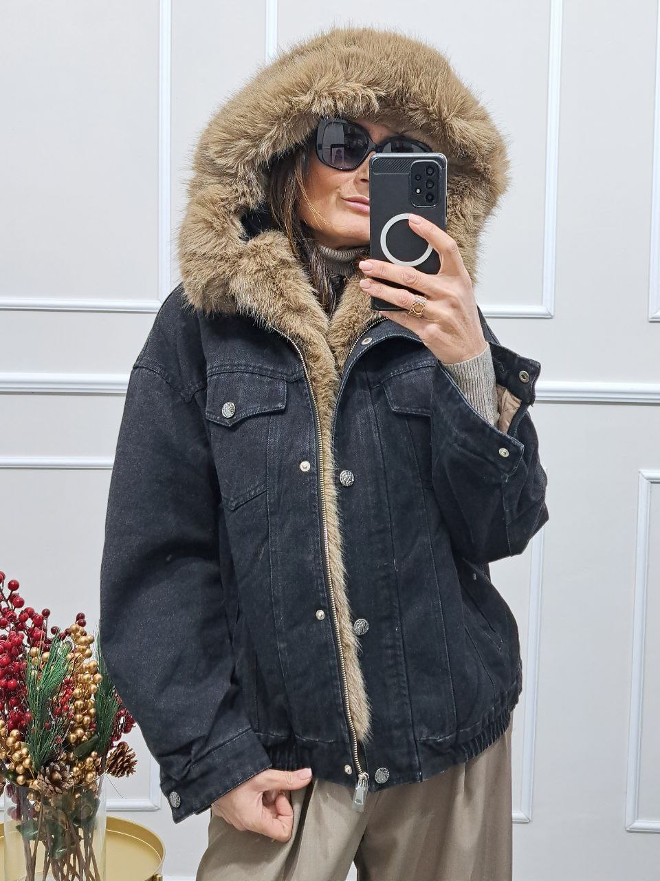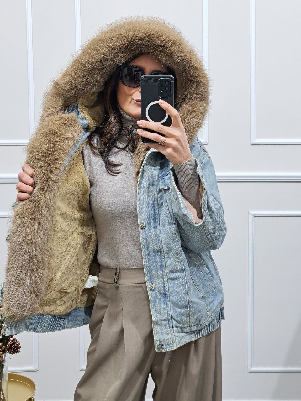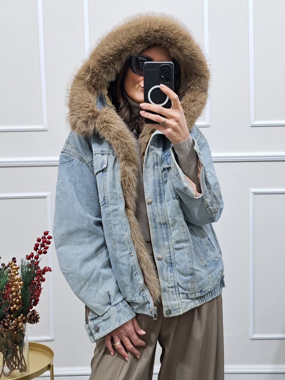 Giubbotto Denim Cappuccio Simona Pelliccia