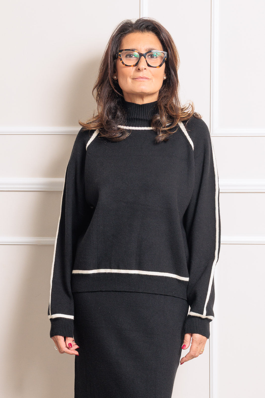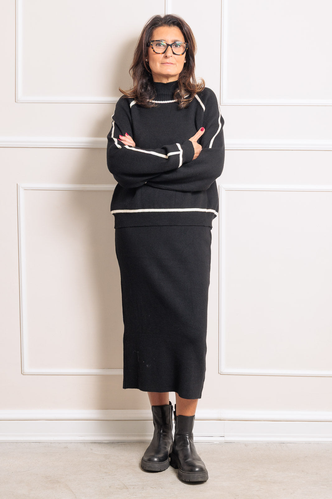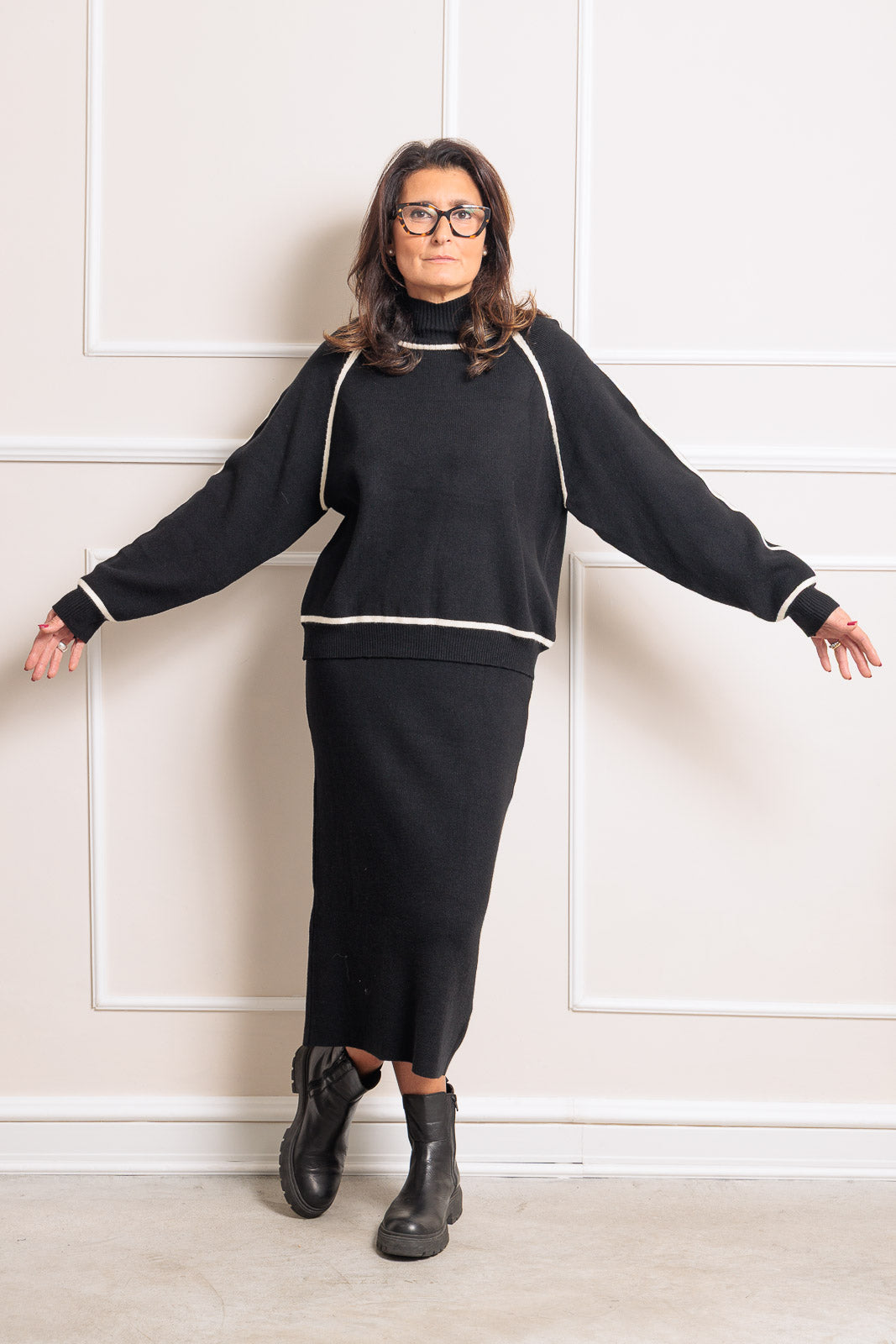 Coordinato gonna in maglia di lana composto da gonna a tubino longuette maglioncino mezzo collo. Questo completo veste bene fino ad una taglia 48/50