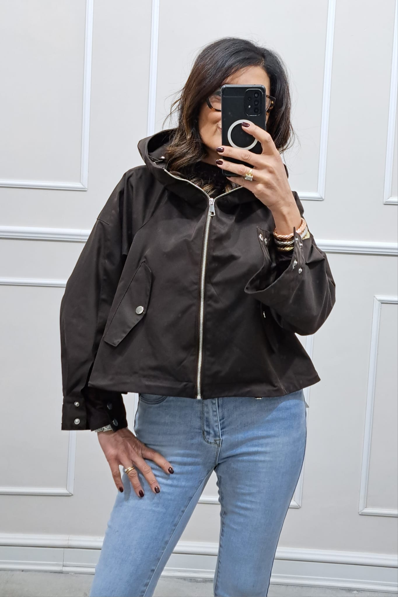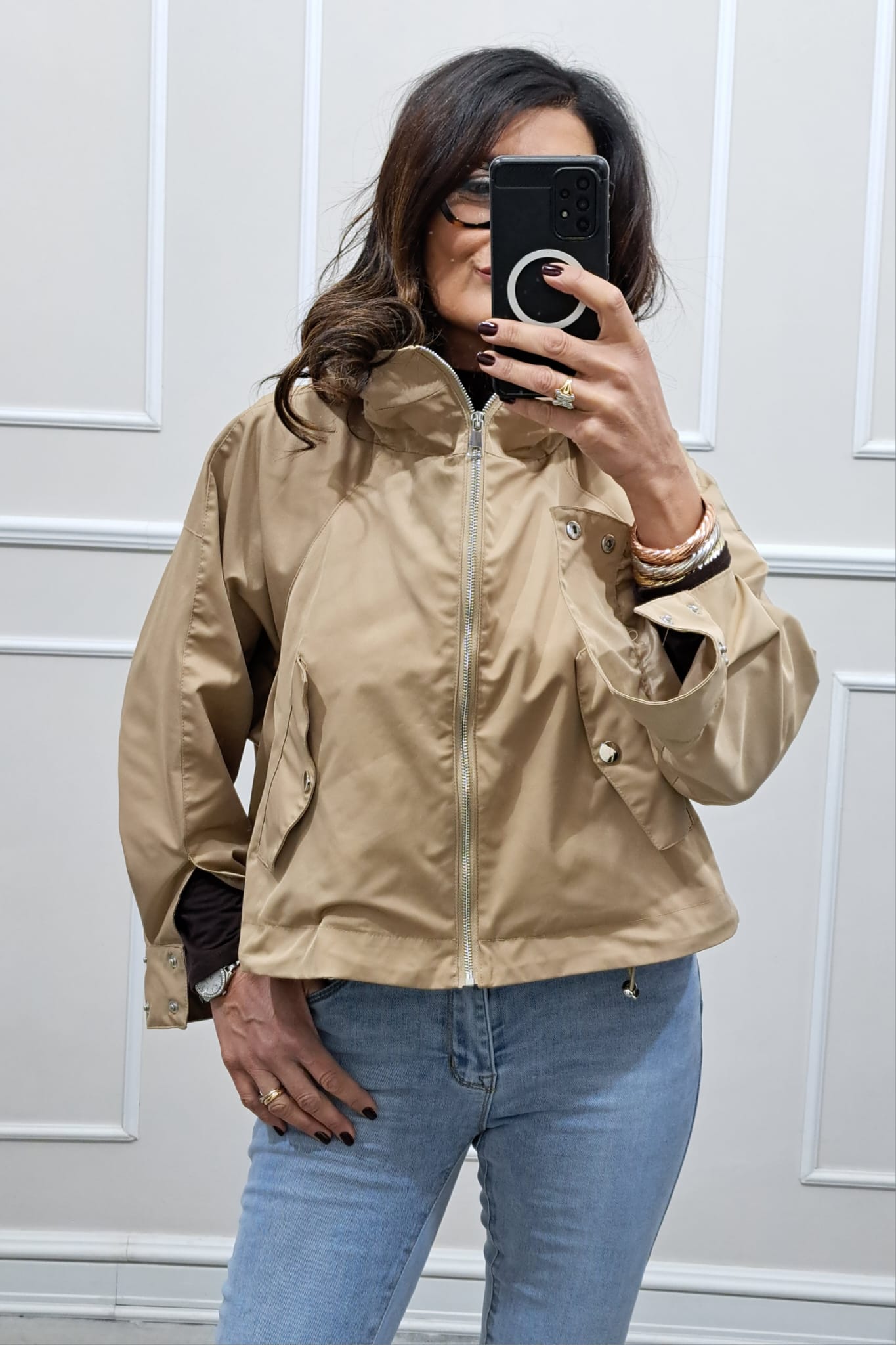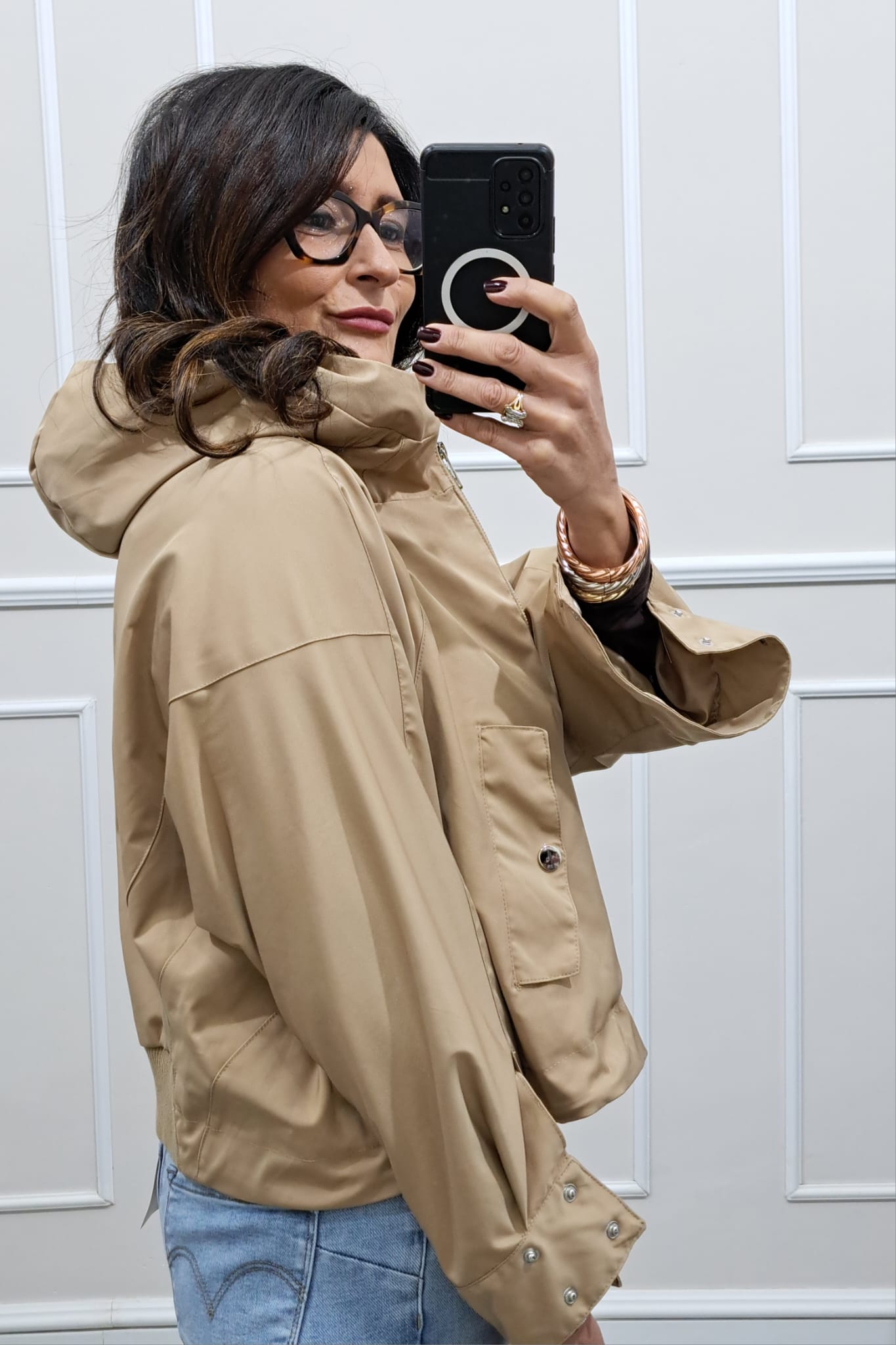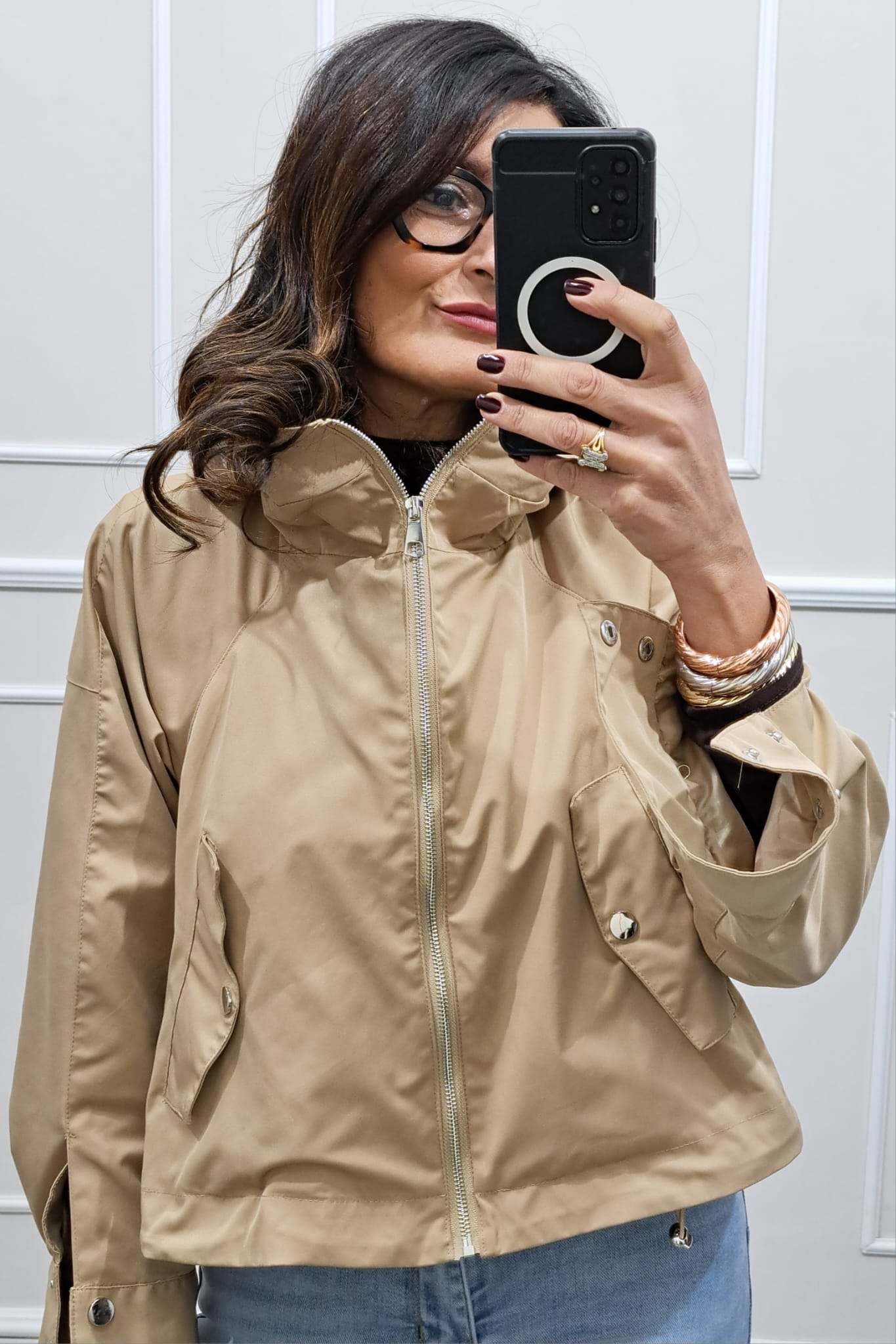 Chiusura con zip cappuccio non removibile, tashe laterali, la modella è alta 170cm