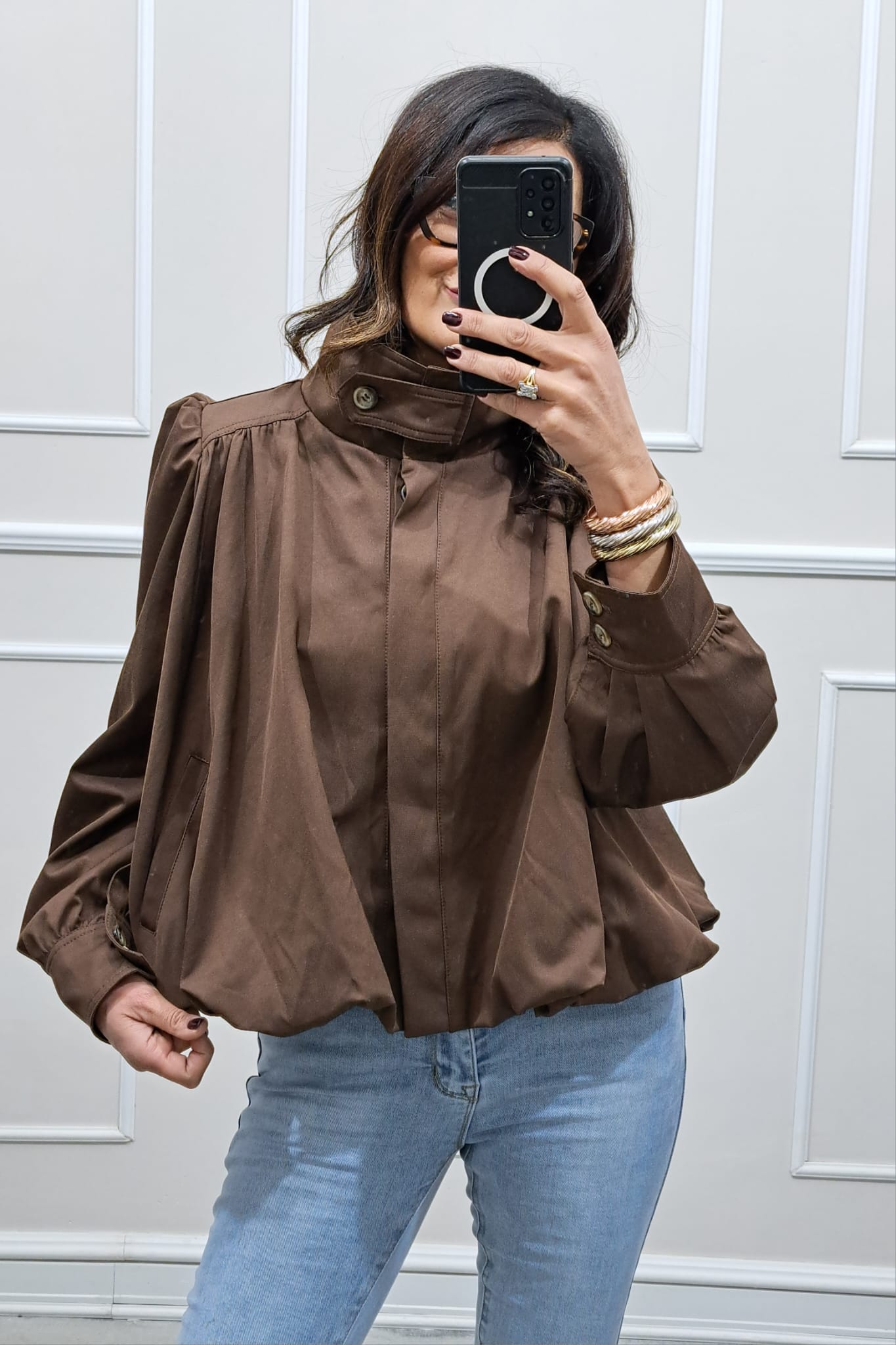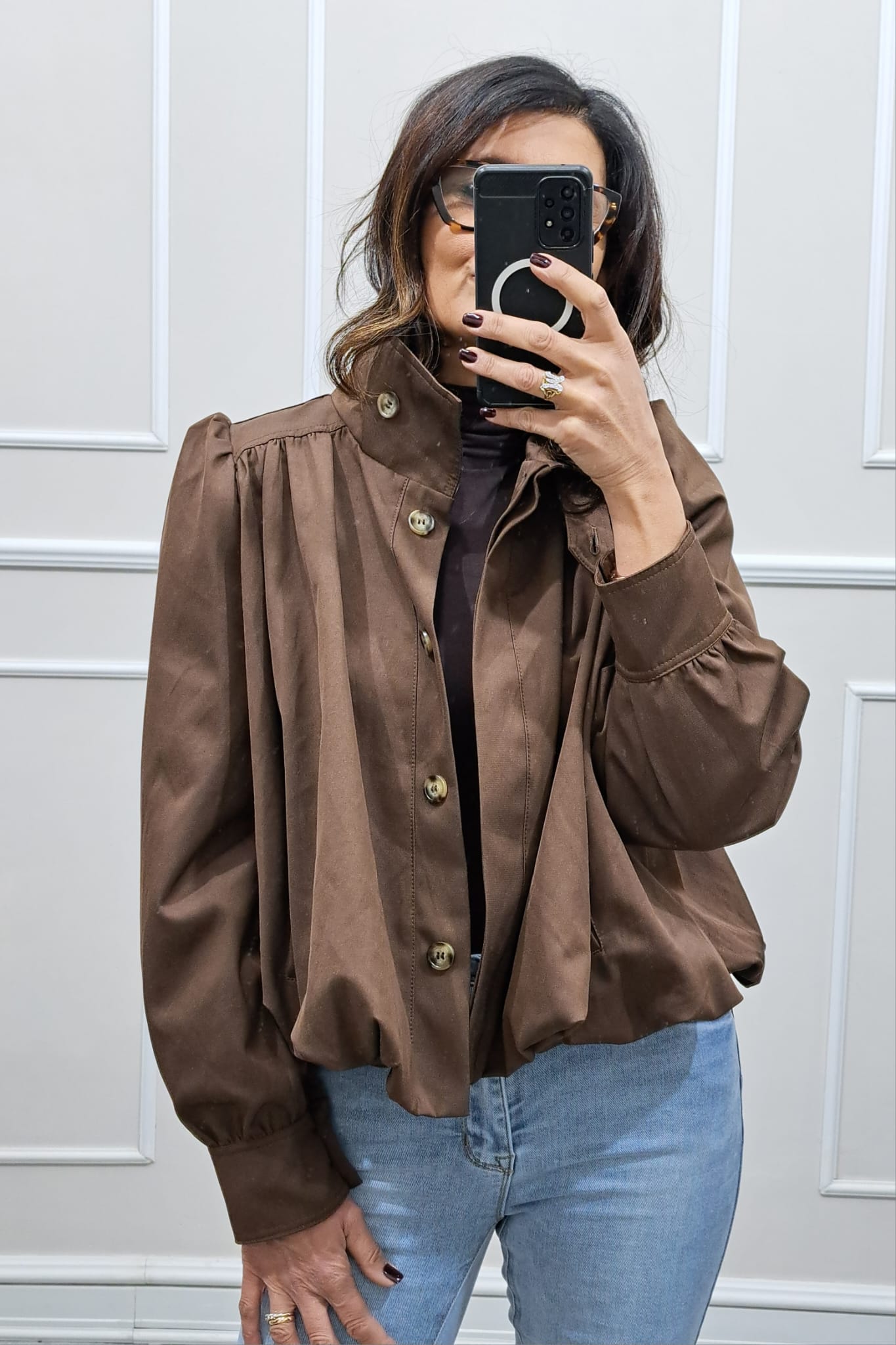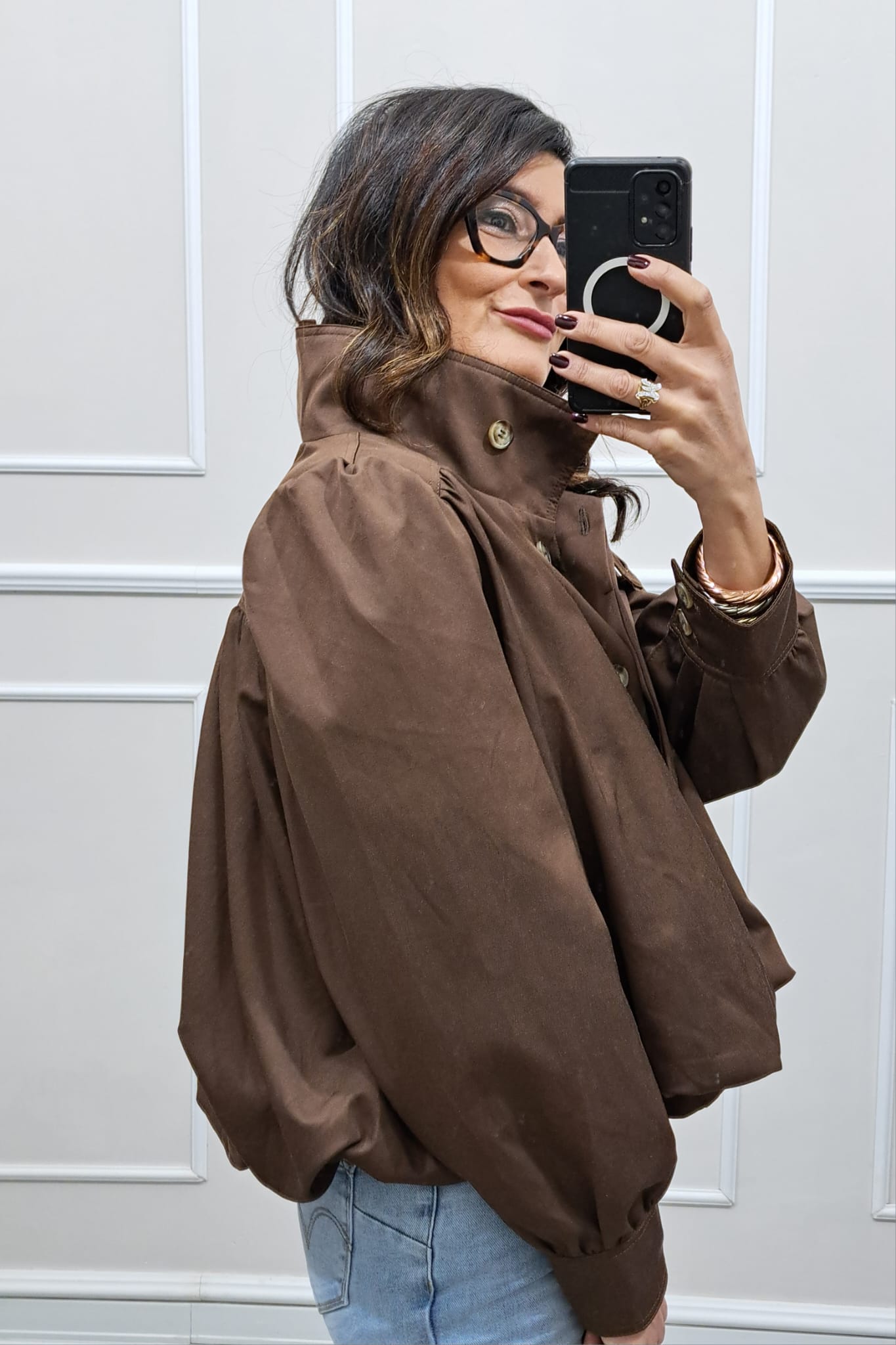 Giubbino con spalline ,veste dino a tg 46 la.modella è alta 170cm ,tg unica