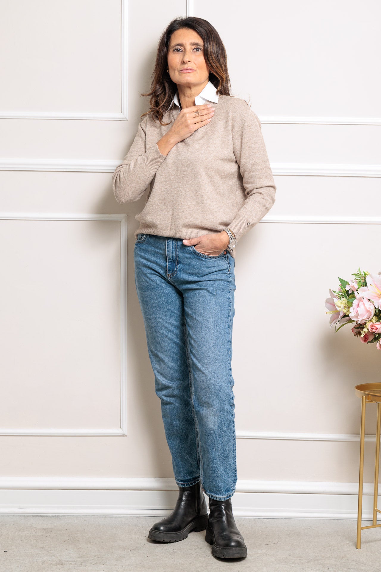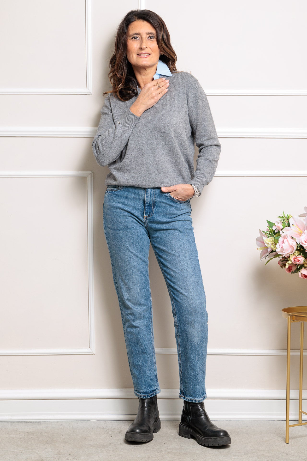 Maglione dalla vestibilità leggermente over colletto a contrasto in cotone, non rimovibile veste fino ad una TG 48