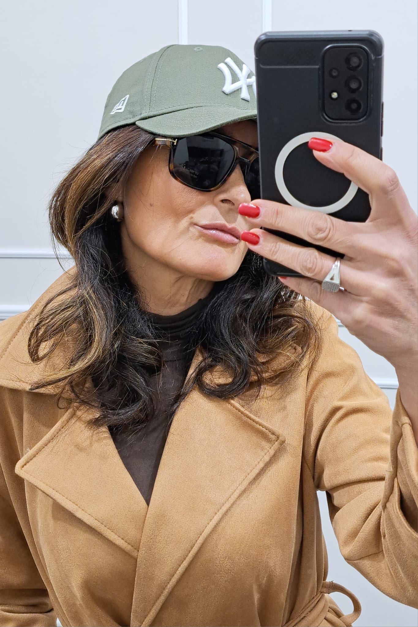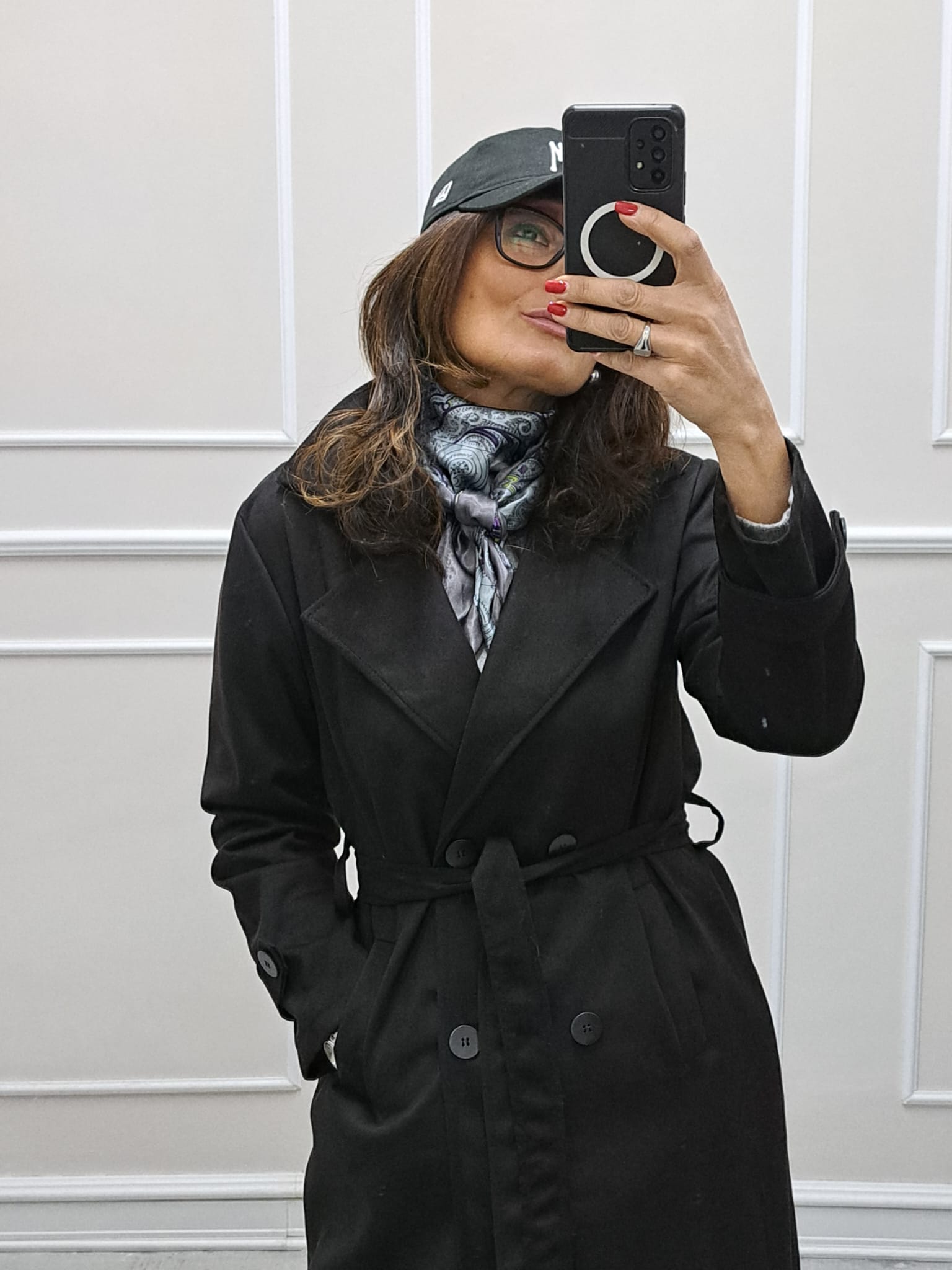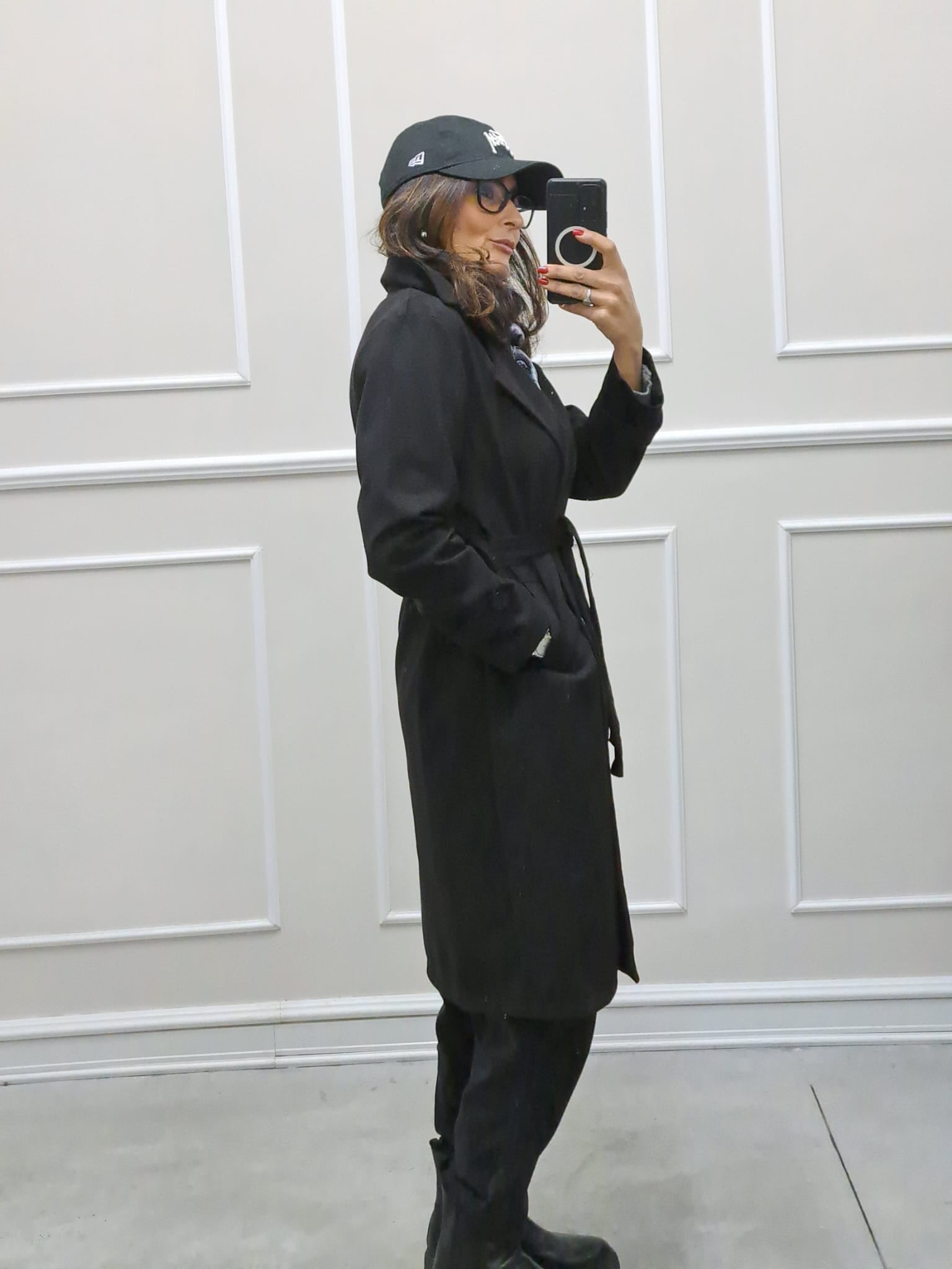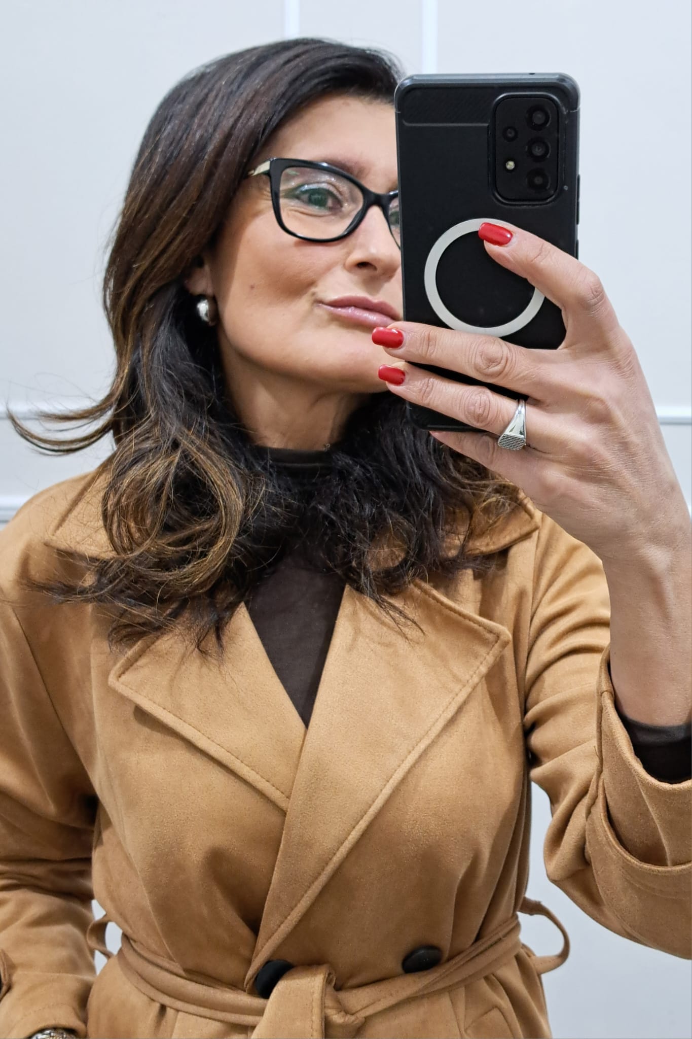 Trench scamosciato doppiopetto bottoni contrasto veste fino a tg 46,la modella è alta 170cm, perfetto anche sopra i tailleur