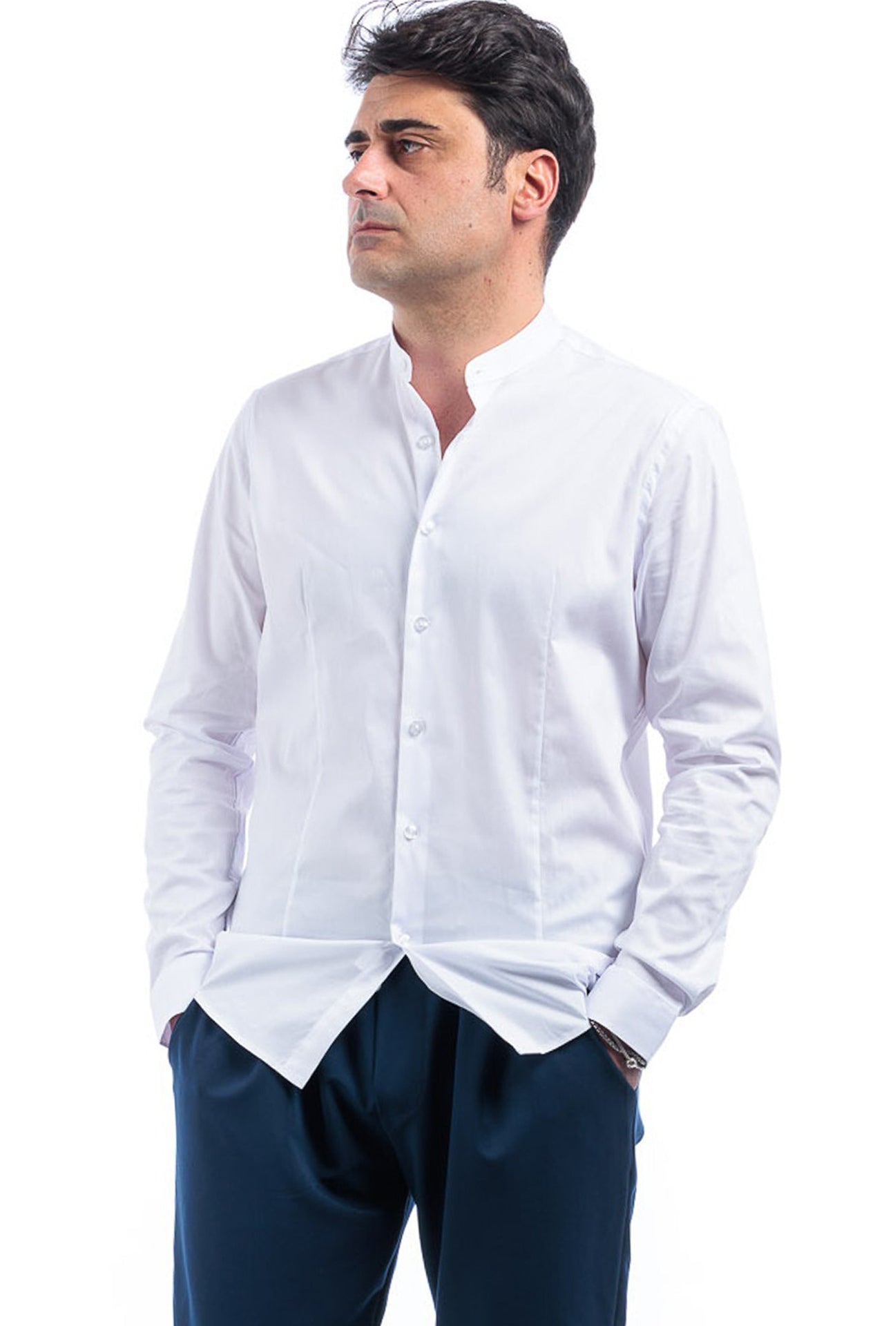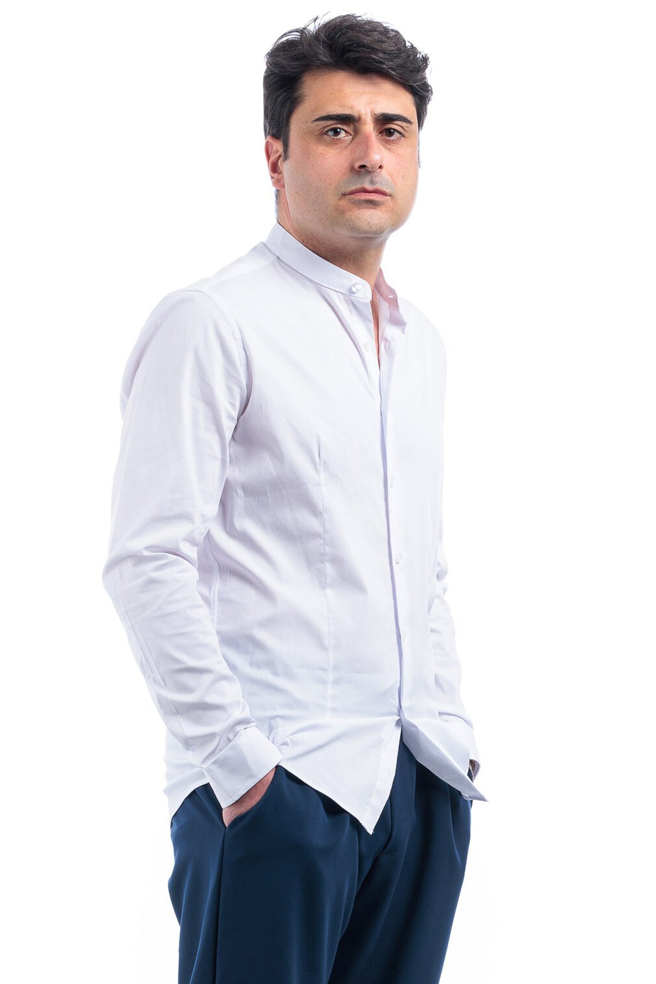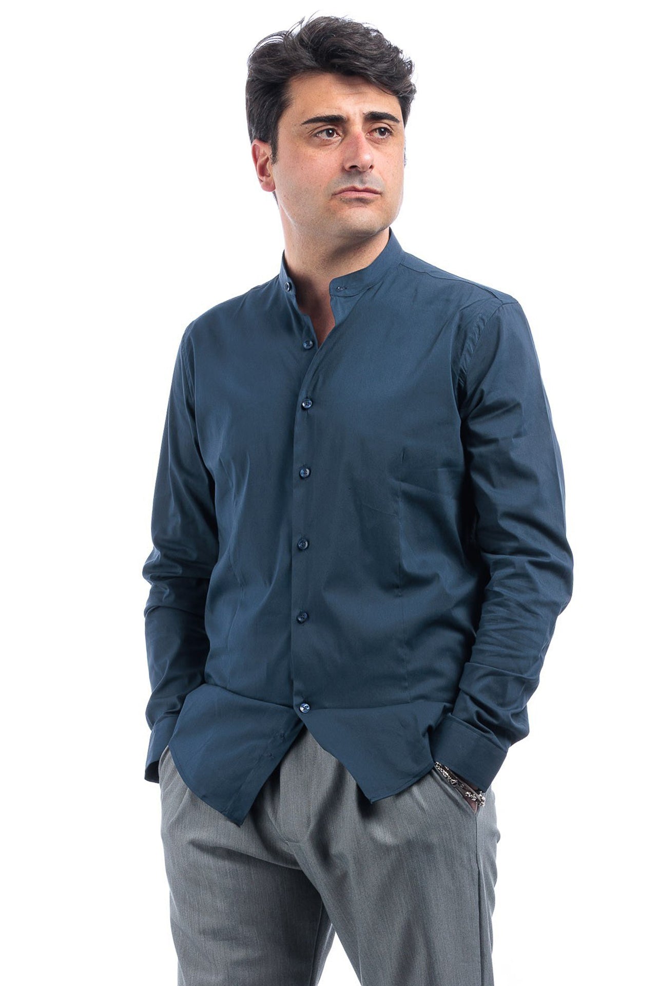 Camicia uomo collo coreana. Cotone elasticizzato. Ottimo rapporto qualita' prezzo. Ideale per qualsiasi tipo di look.