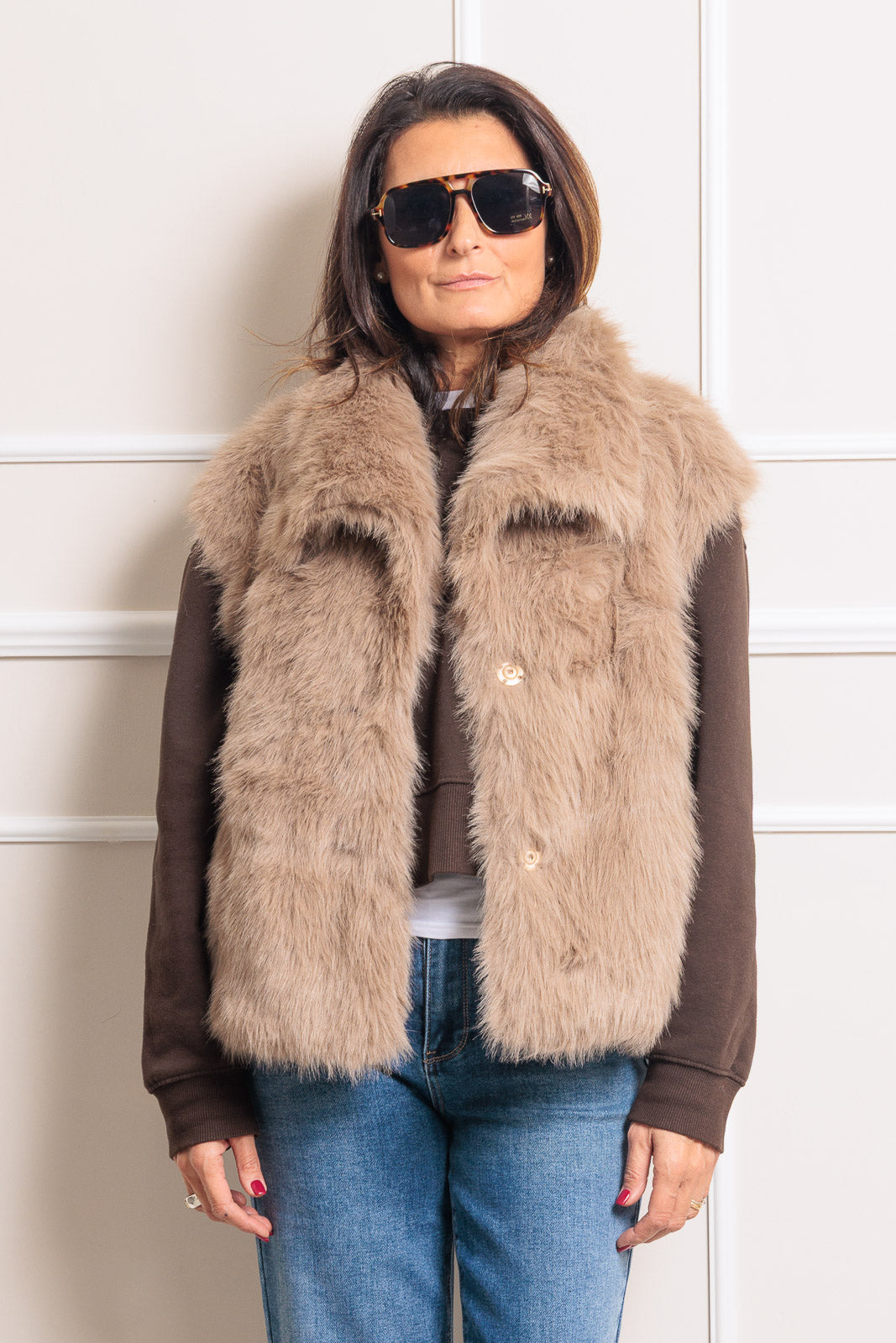 Smanicato in ecopelliccia abbottonatura nascosta con ciappe tasche laterali taglia unica veste fino ad una taglia 46